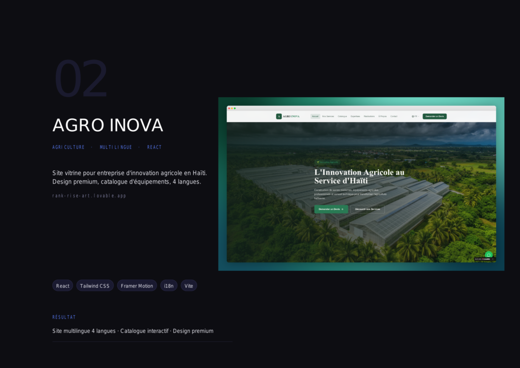 Nous comprenons cette préoccupation légitime. C’est précisément pour cela que nous ne nous contentons pas de créer un « joli » site. Notre approche est axée sur les résultats : nous analysons votre marché cible, optimisons chaque page pour la conversion, intégrons des appels à l’action stratégiques et configurons le référencement dès le départ. De plus, nous incluons des outils d’analyse qui vous permettent de mesurer concrètement vos résultats. Nos clients constatent généralement une augmentation significative de leur visibilité et de leurs demandes de contact dans les premiers mois suivant le lancement. Nous travaillons main dans la main avec vous pour garantir que votre site devienne un véritable générateur d’opportunités commerciales.