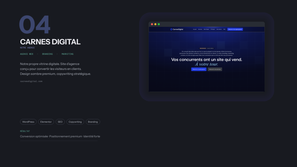 C’est exactement pour ça que Carnes Digital existe. Pas pour créer un « beau site ». Pour créer un site qui fait le travail.